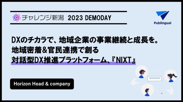 Horizon Head & company 澤村:実際には、例えば製造業の皆様で言えば、新しいものを企画する、もしくは工場DXなどと、いろいろございますけども、そちらに関してITを用いていくというところでございます。こういった中身についてチャレンジ新潟でご提案させていただきました。